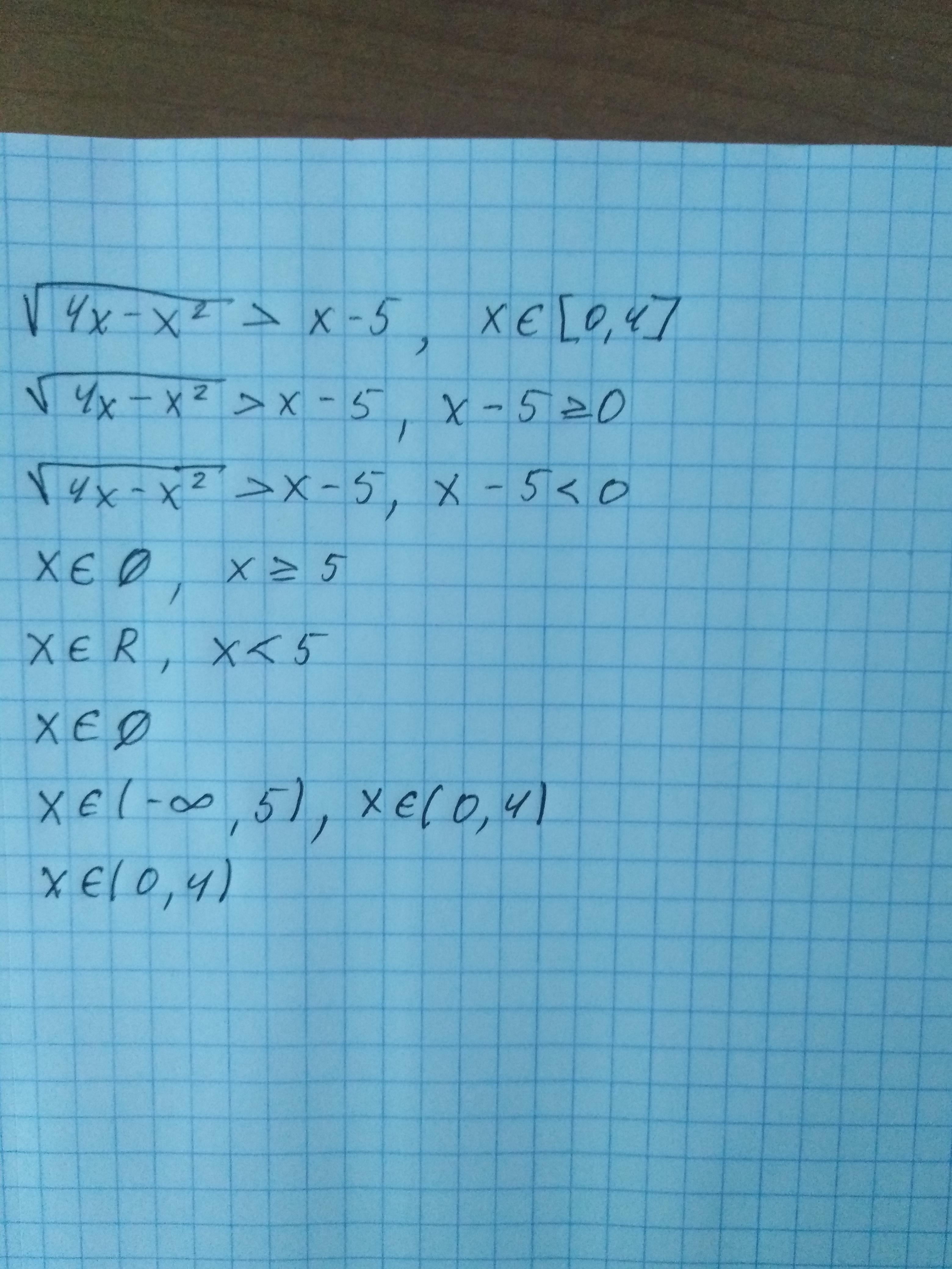 Решите неравенства: √(4x-x^2) > x-5