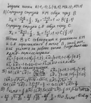 Заданы точки K (−1;−1); L (−2; 1); M (2; 3); N (3; 1).