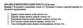 Задание 2 Вспомните содержание сказки А.С.Пушкина «Сказка о мертвой царевне и о семи богатырях». Закончите предложения: