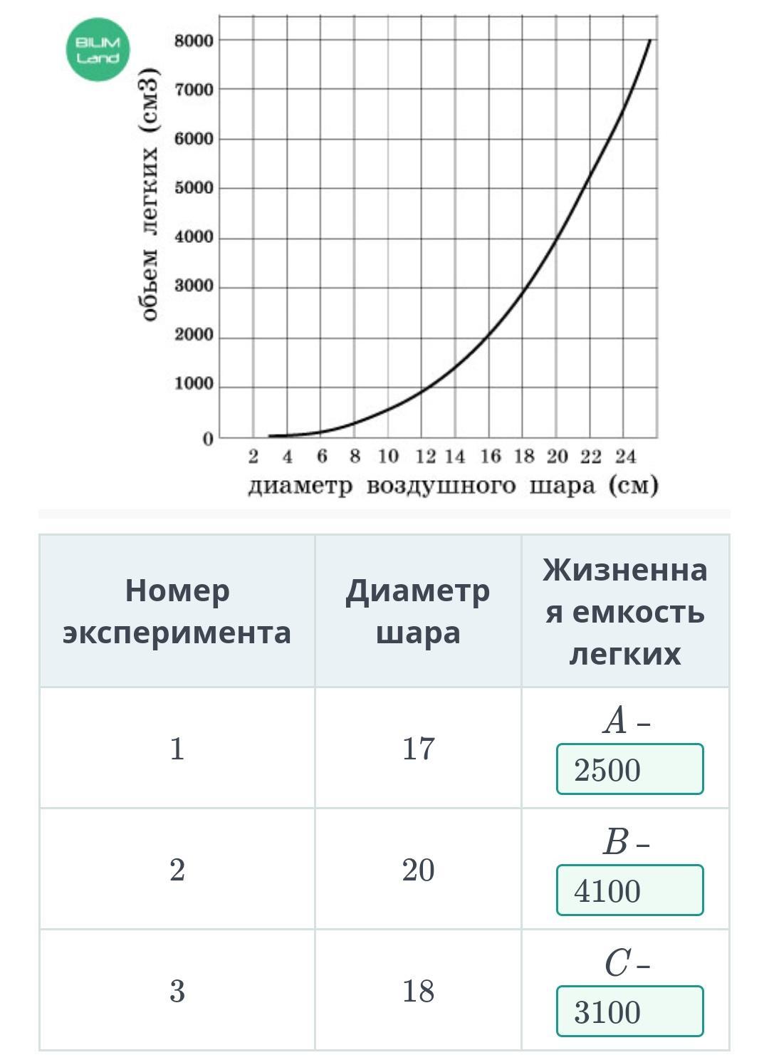 Данные соотнеси с данными на графике, чтобы найти жизненную емкость.