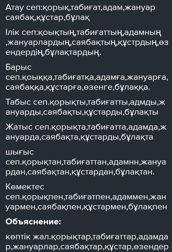 Берілген сөздерге септік және көптік жалғауларын жалғаңдар.