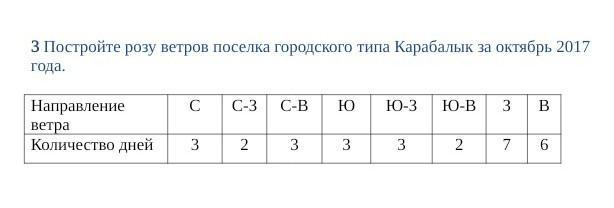 Постройте розу ветров поселка городского типа Карабалык за октябрь 2017 года.
