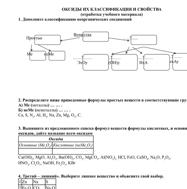 1. Сложные : Оксиды, гидроксиды, кислоты, соли.