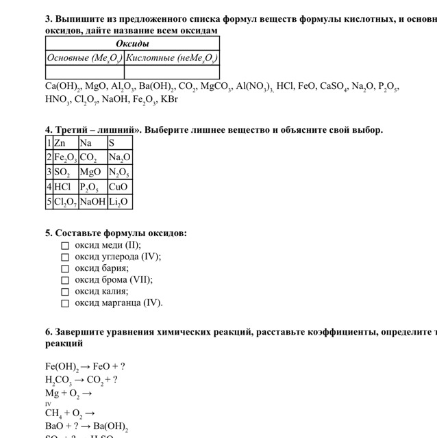 5. CuO, CO2 , BaO , Br2O7 , K2O, MnO2