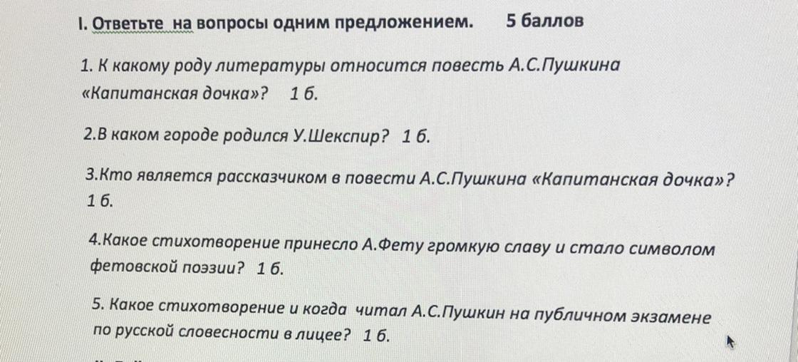 1. К какому роду литературы относится повесть А.С.Пушкина