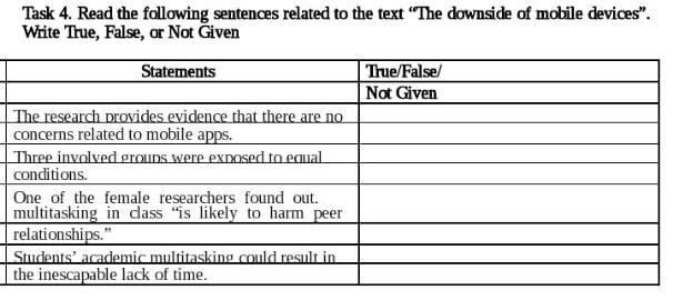 Read the following sentences related to the text "The downside of mobile devices". Write True, False, or Not Given