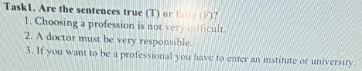 Task1. Are the sentences true (T) or false (F)?