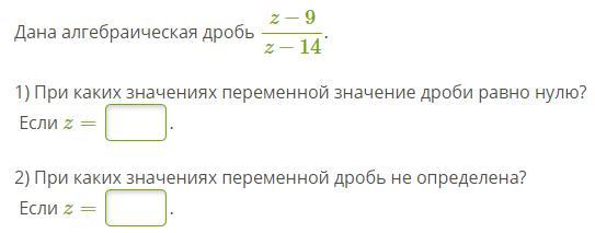 Дана алгебраическая дробь z−9z−14.