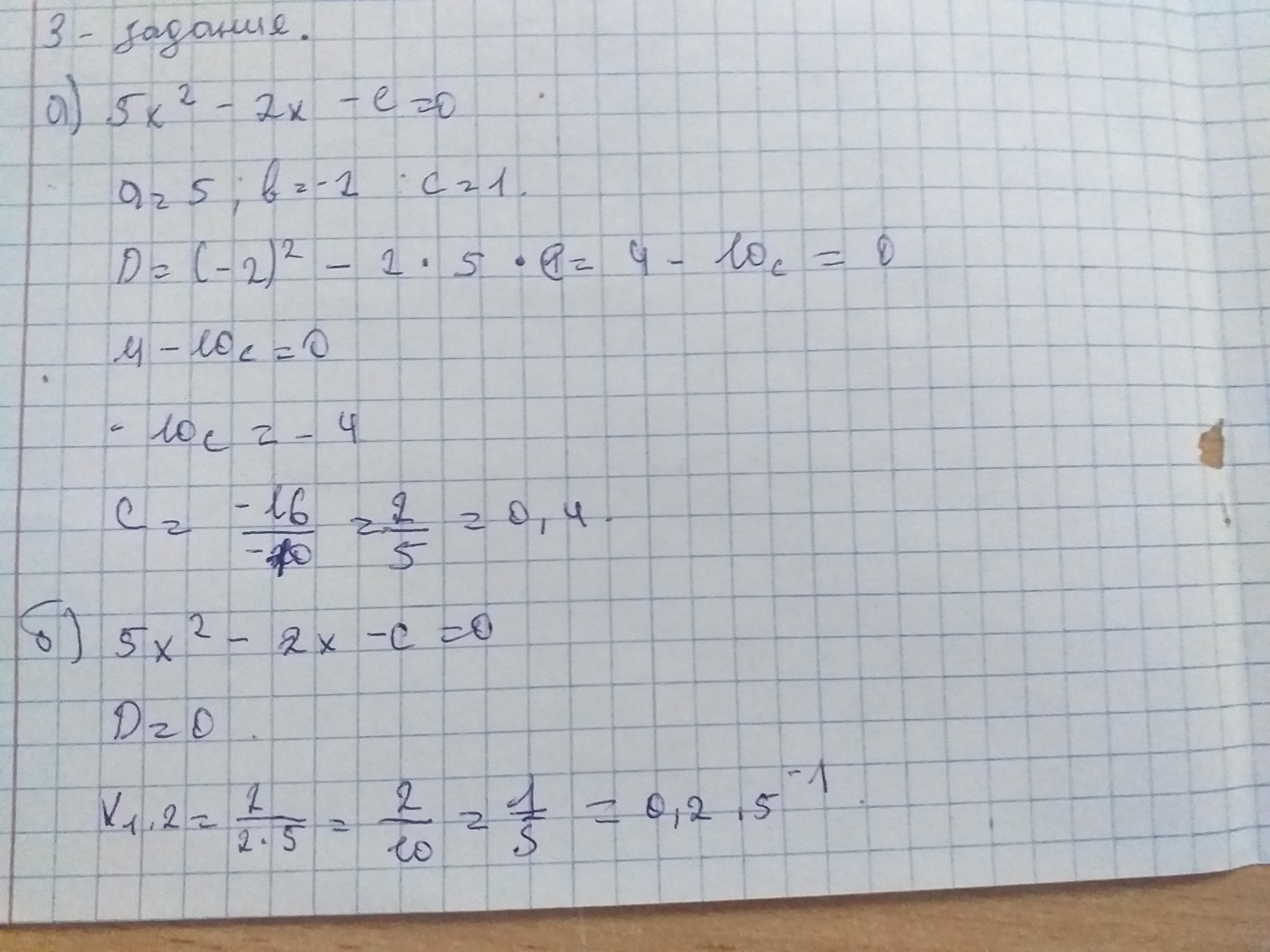 3.Дано квадратное уравнение 5x^2-2x+c=0