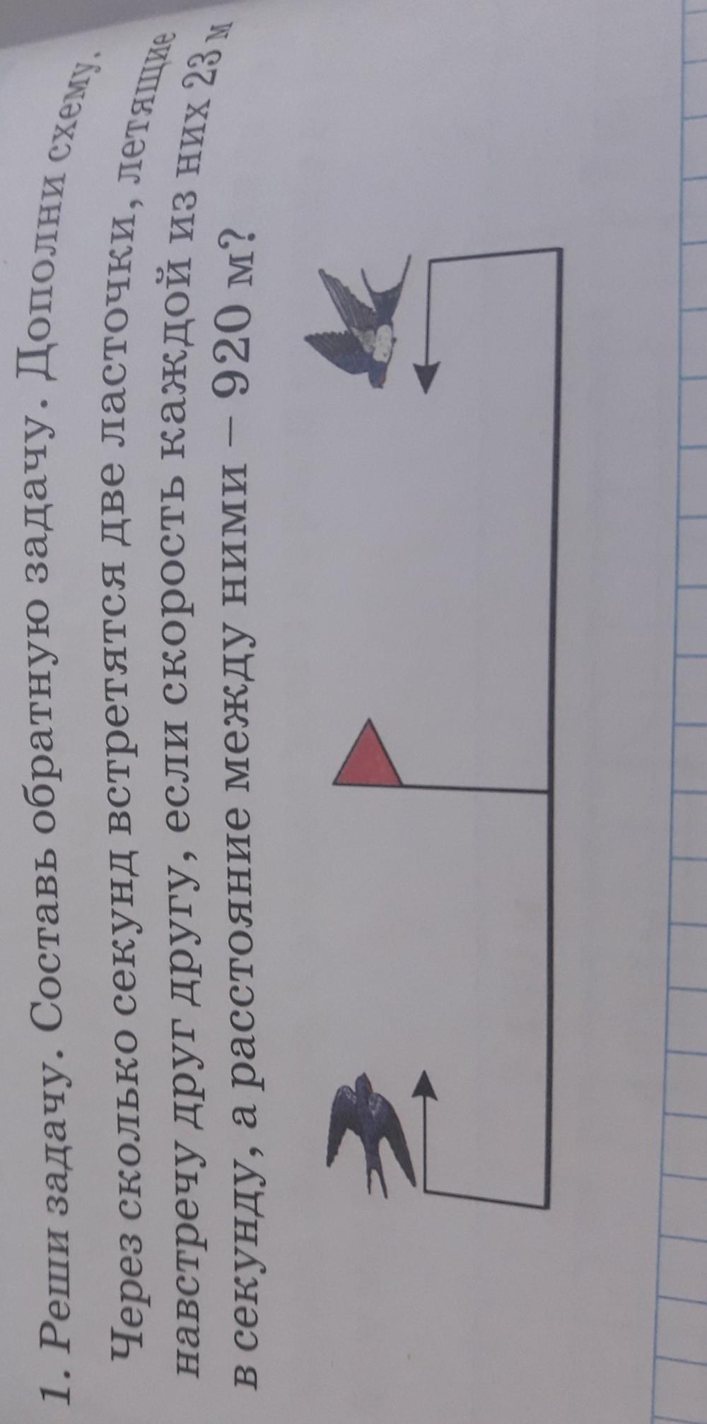 Через сколько секунд встретятся 2 ласточки летящие навстречу друг другу если скорость каждой из них 23 м а расстояние между ними 920 м