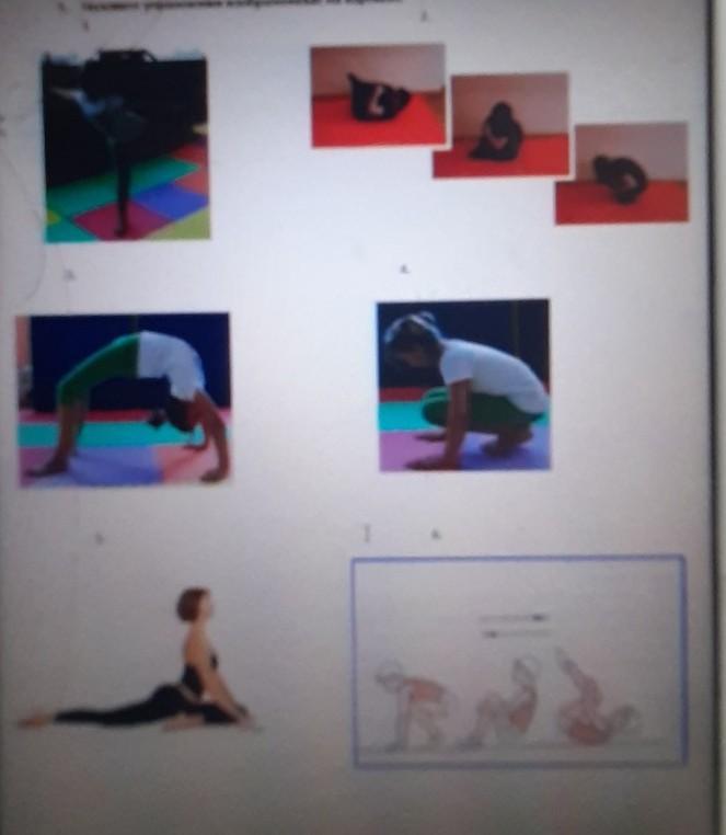 я не разбираюсь но помоему это мостик кувырок шпагат и какаято бабочка