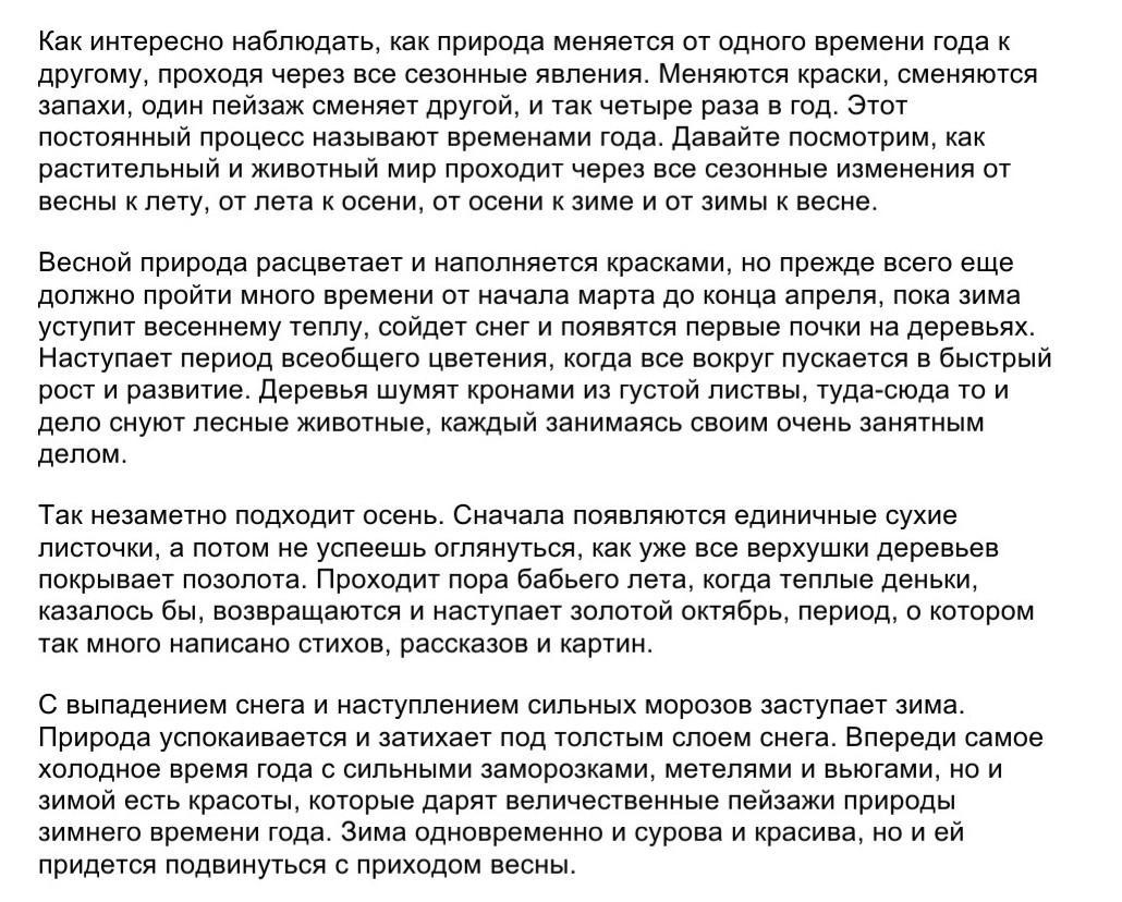 вобщем я написала так 1) сезонные явления природы 2) это первые три строчки 3) выступление это первое предложение основная мысль между первым и последним продолжением и заключительная это последнее предложение