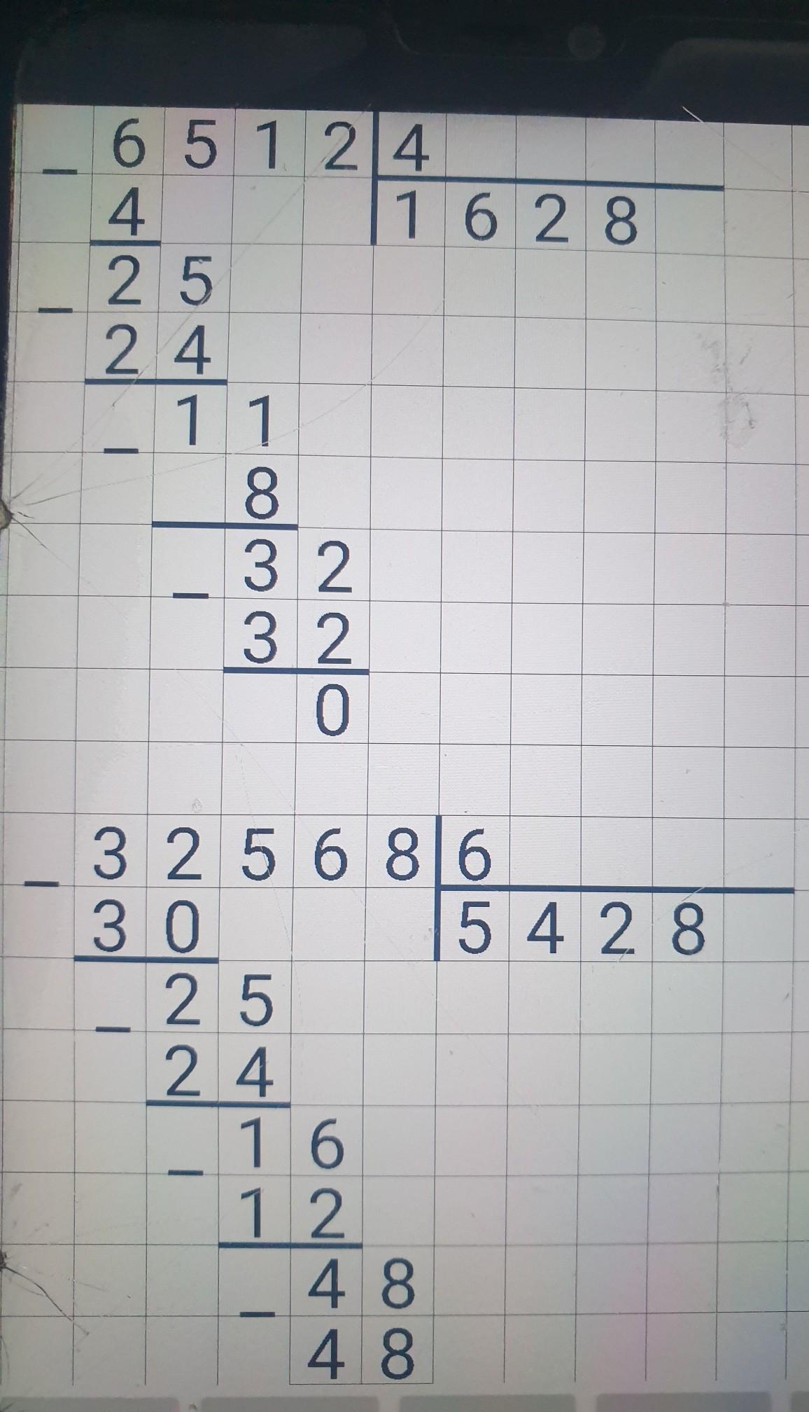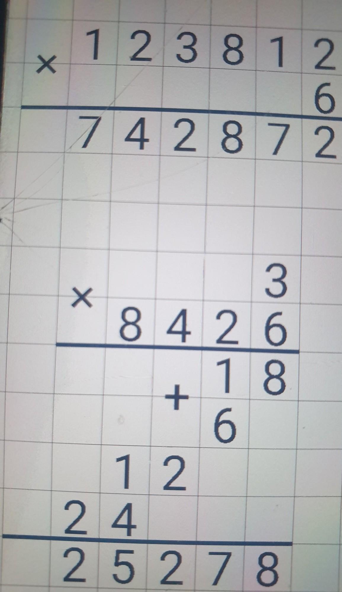 реши столбиком 123812 *6 =?, 3 * 8426 =?, 6512 :4=?, 32568 :6=?, 156-96 :(12 :4): 2=?
