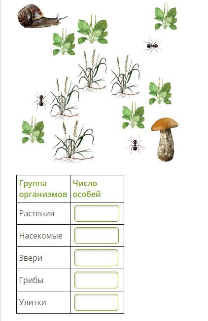 1. Рассмотри пробную площадку на лужайке и внеси данные в таблицу.