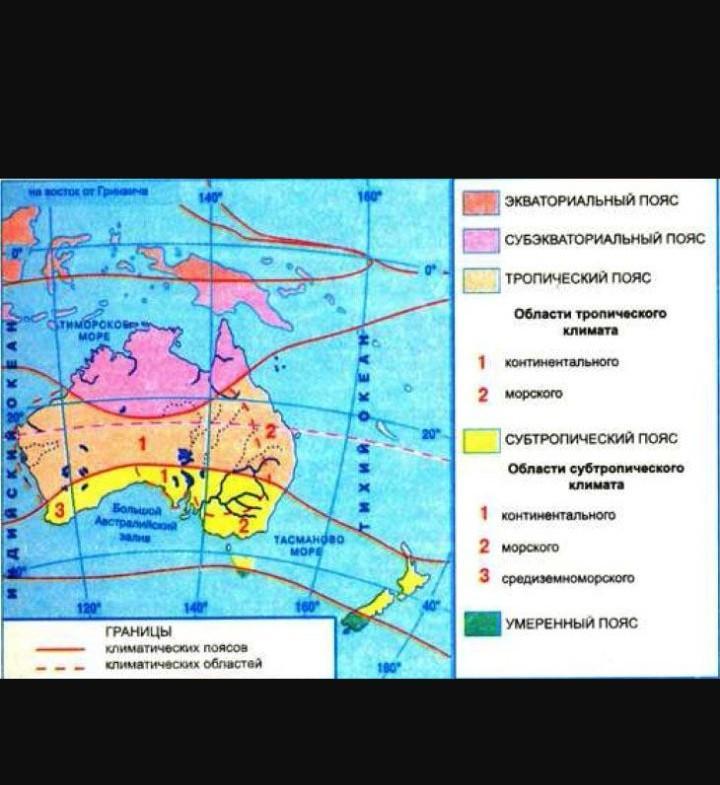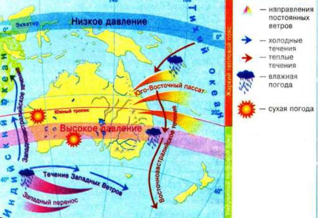 По карте «климатические пояса австралии» определи типы воздушных масс, которые оказывают влияние на климат австралии.