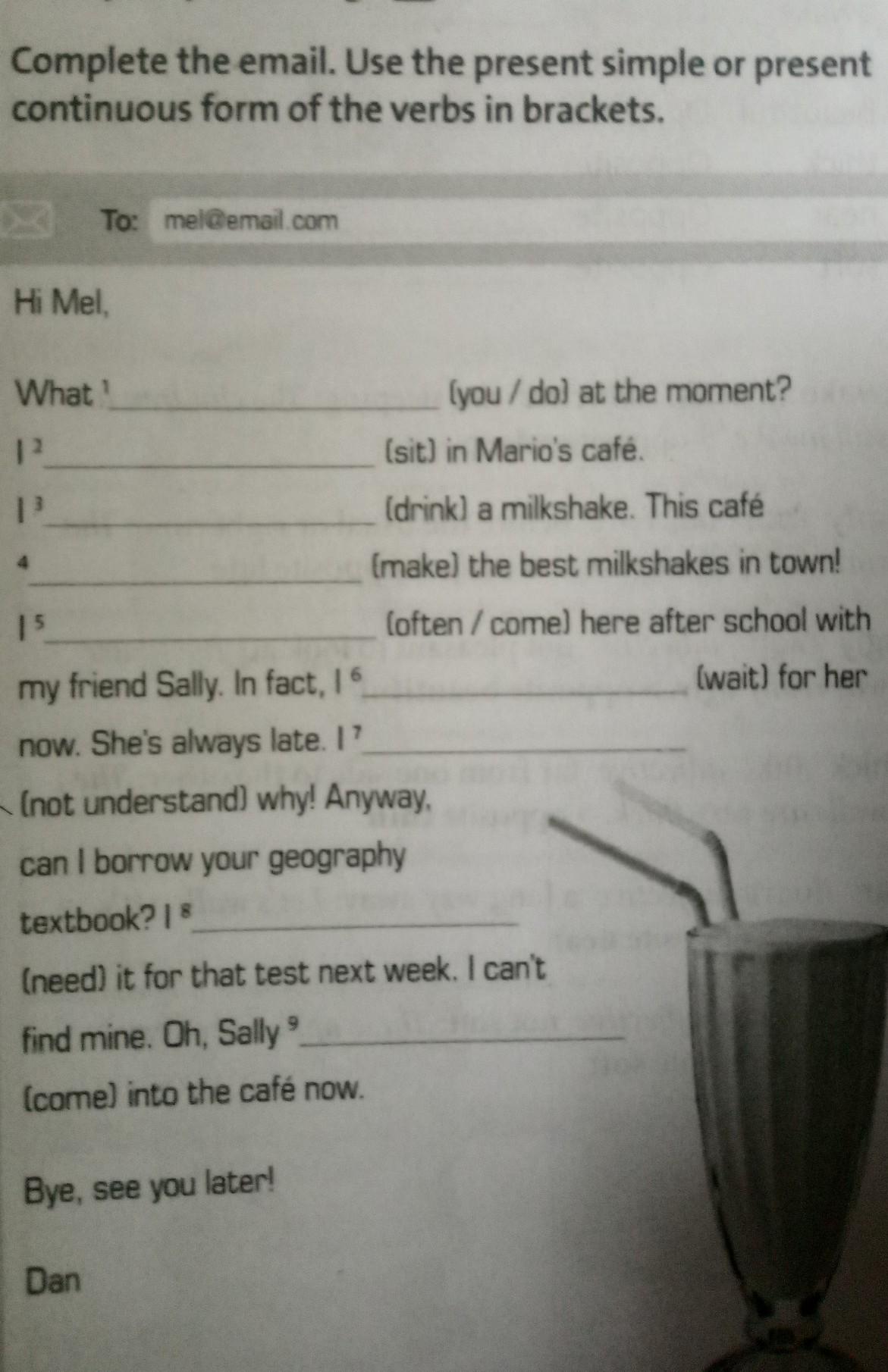 In fact, I_________(wait) for her now. She's always late. I (not understand) why! Anyway.