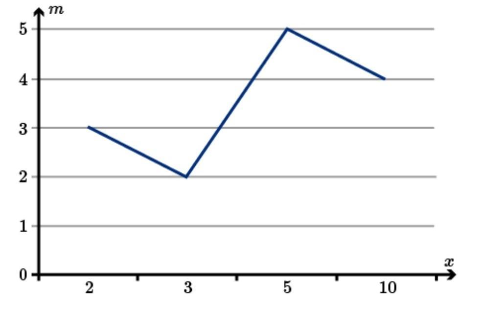 По данному полигону абсолютных частот определи значение х , которое наименьшее число раз встречается в выборке ?