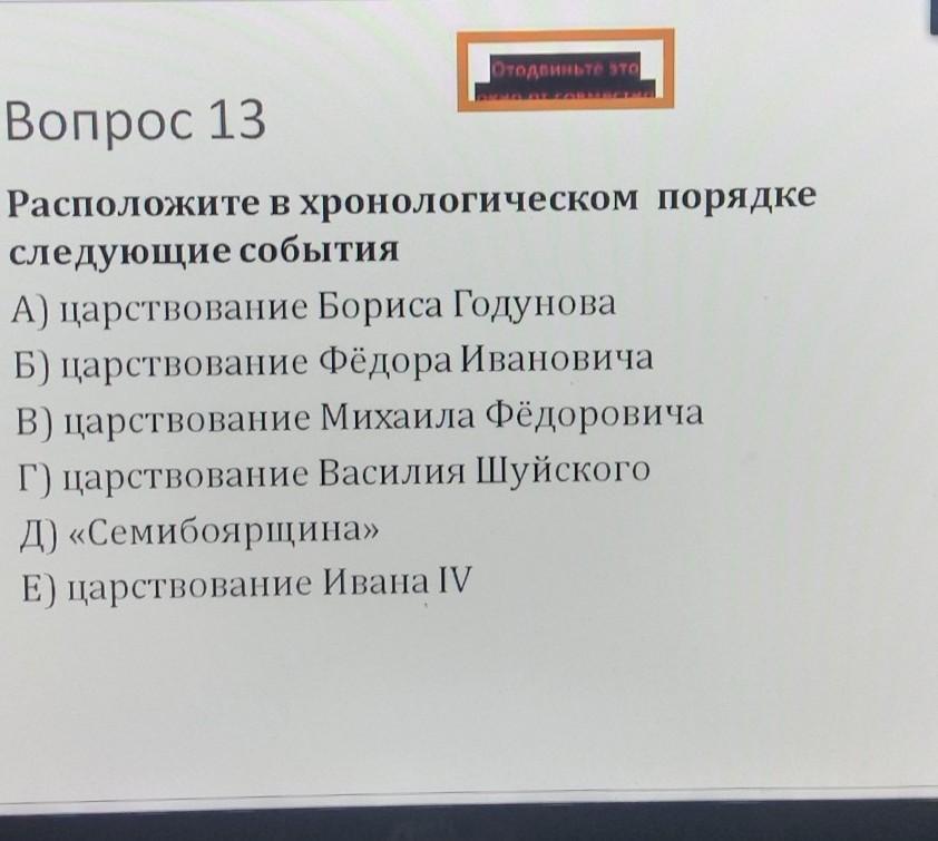 - Хронология такая: Е, Б, А, Г, Д, В.