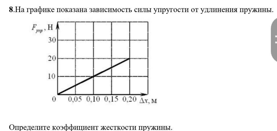 [1] 8.На графике показана зависимость силы упругости от удлинения пружины. Определите коэффициент жесткости пружины. [3]