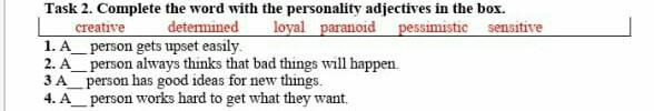 Task 2. Complete the word with the personality adjectives in the box.