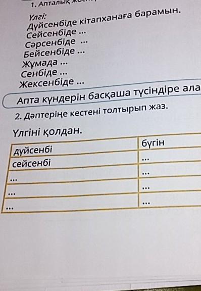 Дәптеріңе кестені толтырып жаз дуйсенбі –бүгін