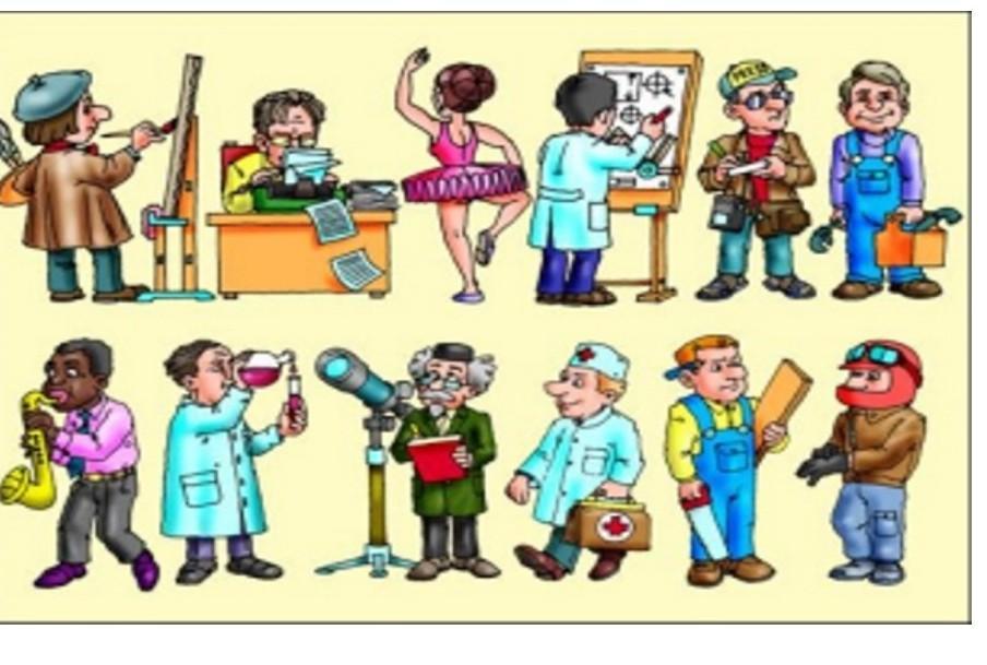 Художник , писатель,балерина , учёный , (учитель ) , фотограф ( журналист) , сантехник , музыкант , химик , звездочёт , врач , плотник , водитель