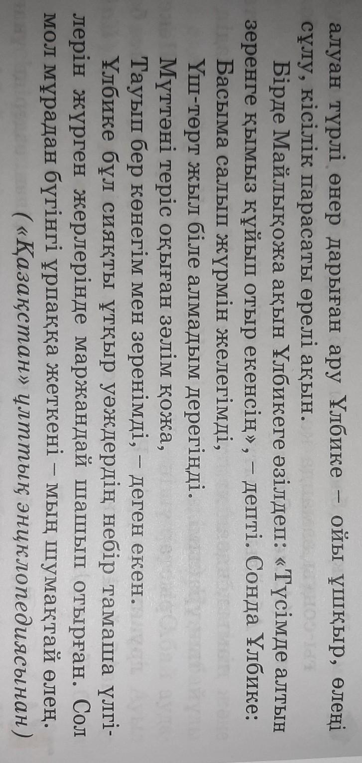 мәтіннен көнерген сөздерді тауып, мағынасын ашыңдар және түрлеріне қарай ажыратыңдар