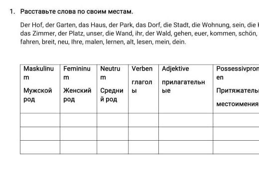 мужской род - der Hof, der Garten, der Park, der Platz, der Wald