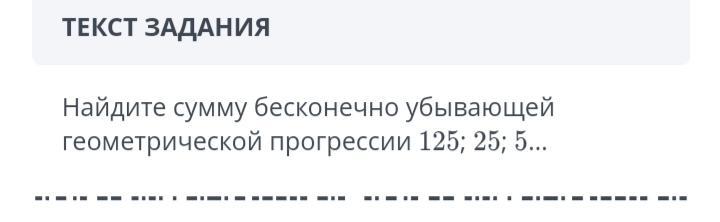 Сумма бесконечно убывающей прогрессии находится по формуле:
