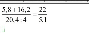 Запишите дробное выражение, числитель которого равен сумме 5,8 и 16,2, а знаменатель- частному 20,4 и 4