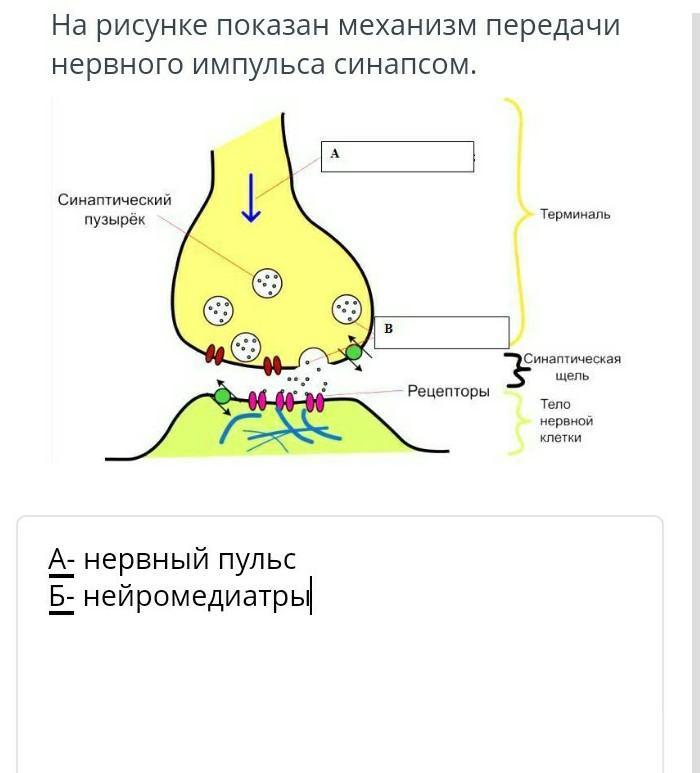 На рисунке показан механизм передачи нервного Импульса синапсом.
