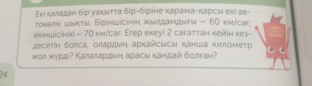 Яғни 1-ші көлік 60км/сағ×2=120км