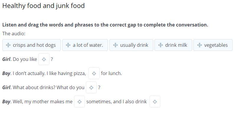 Listen and drag the words and phrases to the correct gap to complete the conversation.