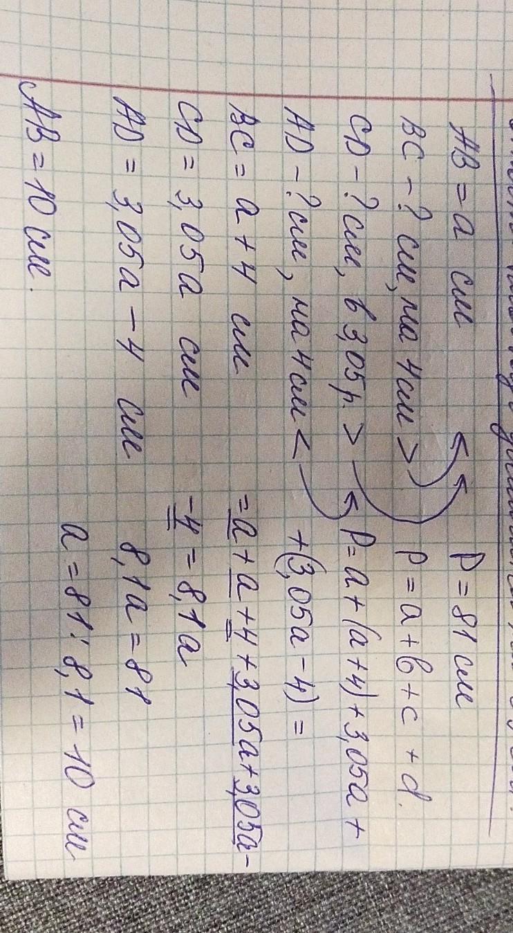 2) Зная, что периметр ABCD равен 81 см и используя данные пункта 1, составьте уравнение. [1]