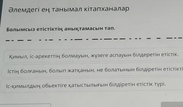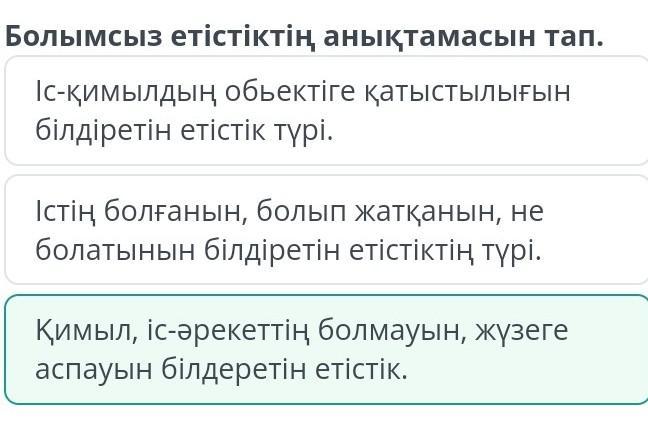 Қимыл, іс-әрекеттің болмауын, жүзеге аспауын білдeрeтін етістік.