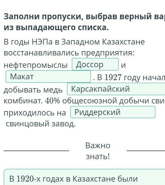 Заполни пропуски, выбрав верный вариант из выпадающего списка.