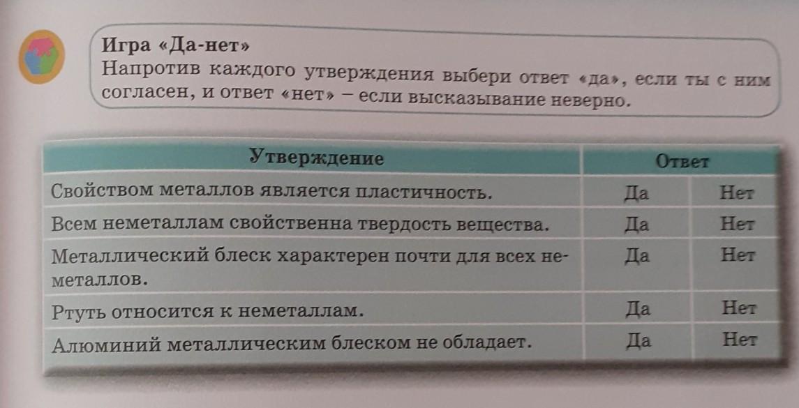 Игра "да-нет". Напротив каждого утверждения выбери ответ "да", если ты с ним согласен, и ответ "нет" - если высказывание неверно.