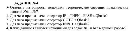 3. оператор INPUT нужен для того, чтобы программа в процессе работы могла получить от пользователя какие-то данные. например INPUT "Введите свой возраст" - выведети на экран предложение "Введите свой возраст" и будет ждать ввода числа.