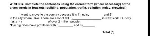 1 - noisy, 2 - crowded, 3 - building 4 - population, 5 - traffic, 6 - pollution