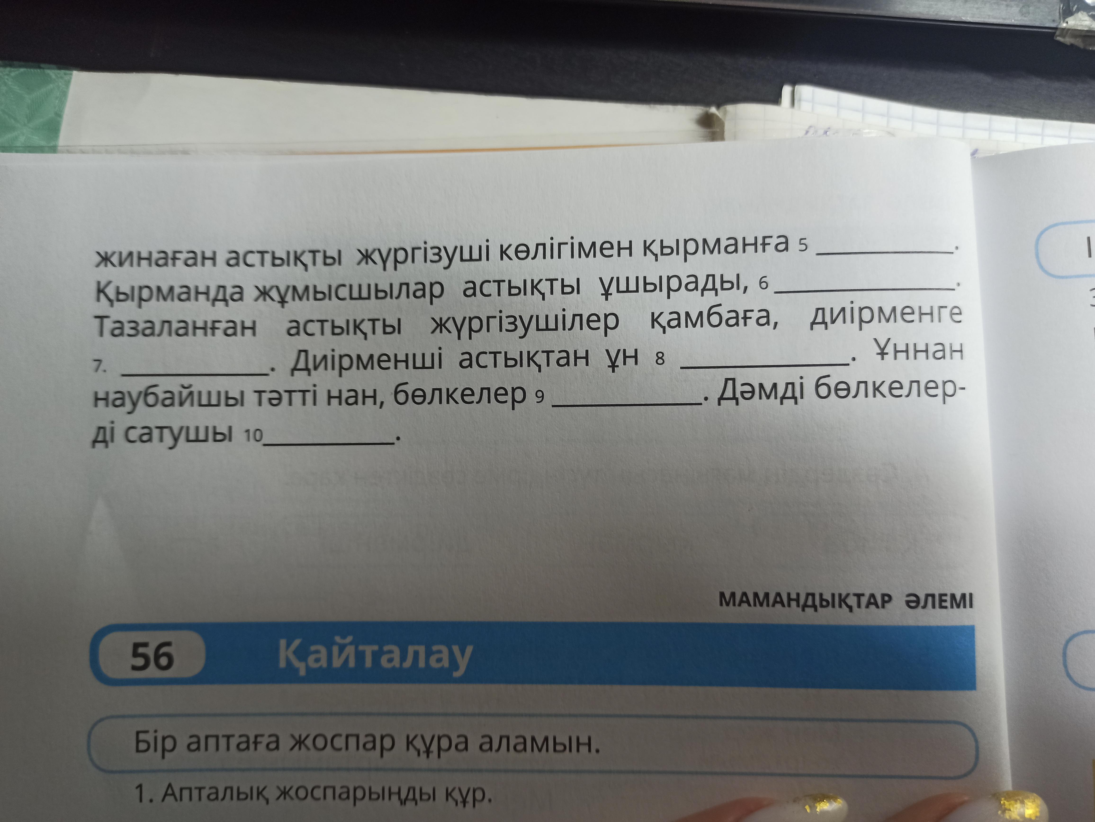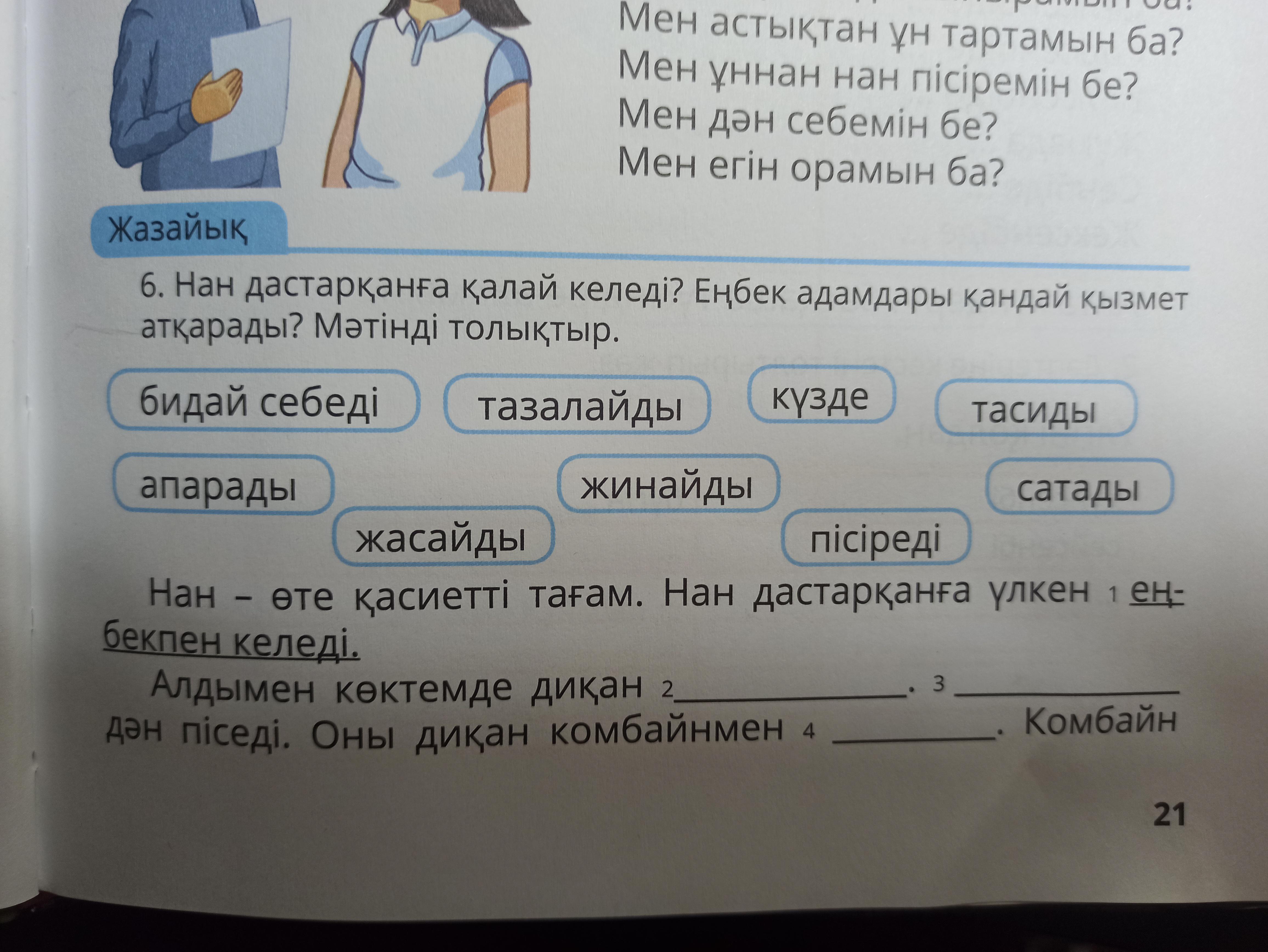 6. Нан дастарқанға қалай келеді? Еңбек адамдары қандай қызмет атқарады? Мәтінді толықтыр.