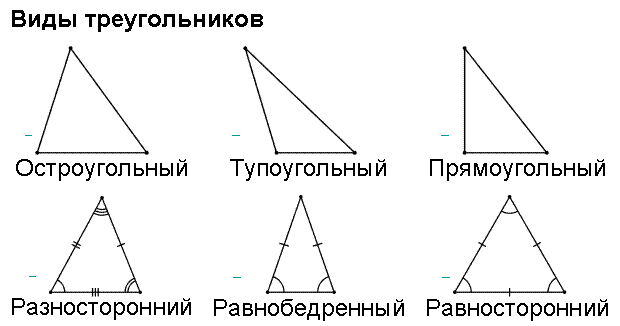 Вид треугольника -прямоугольный, остроугольный, тупоугольный.