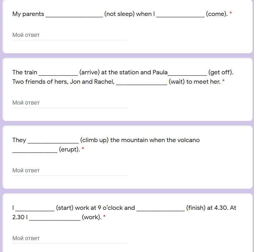 4) I started work at 9 o’clock and finished at 4:30. At 2:30 I worked.