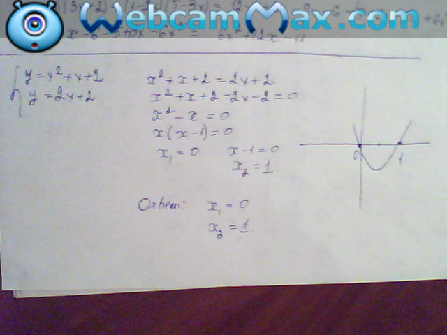 Не выполняя построений найдите координаты точек пересечения параболы y=x^2+x+2 и прямой y=2x+2