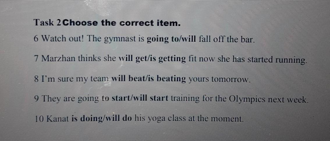 6 Watch out! The gymnast is going to/will fall off the bar.