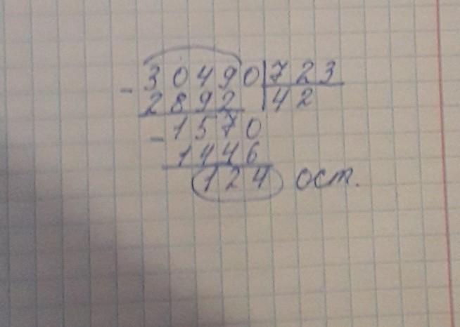 30490:723=42 (ост. 124)