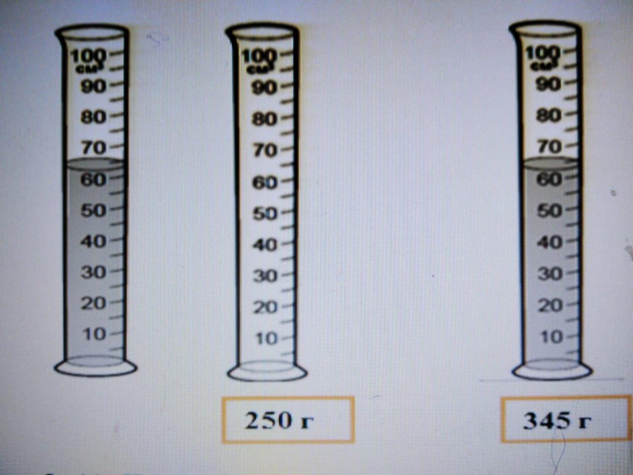 3)Плотность жидкости:250г (345-345=0,поэтому будет 250г)
