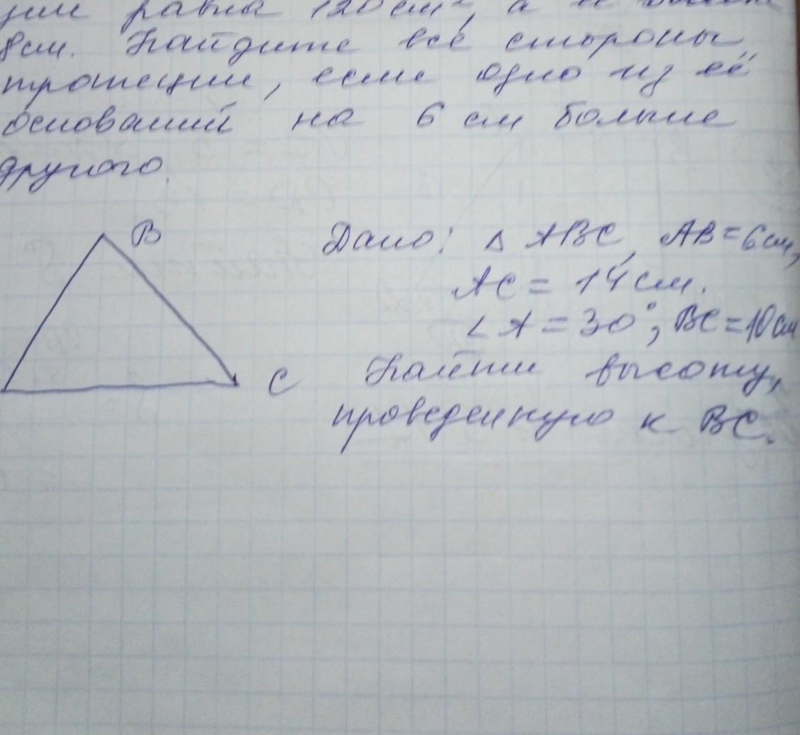 S = 1/2 • AB • AC • sinA = 6•14•1/2 = 42 (см²).