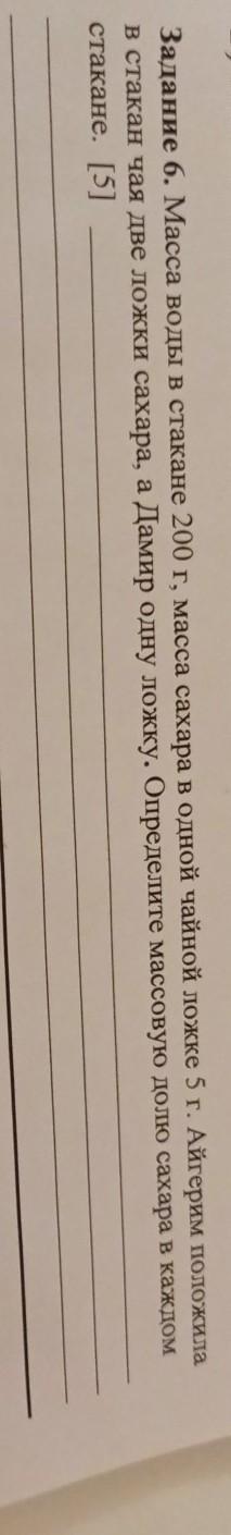 Задание 6. Масса воды в стакане 200 г, масса сахара в одной чайной ложке 5 г. Айгерим положила