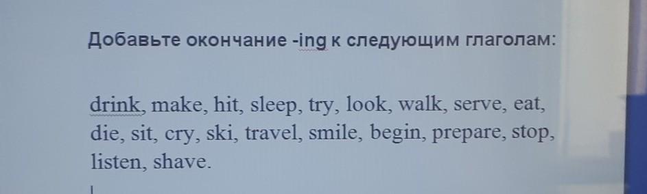 drinking,making,hitting,sleeping,trying,looking,walking,serving,eating,dieing,sitting,crying,skiing,traveling,smiling,beginning,preparing,stopping,listening,shaving