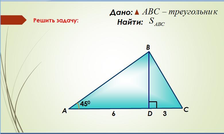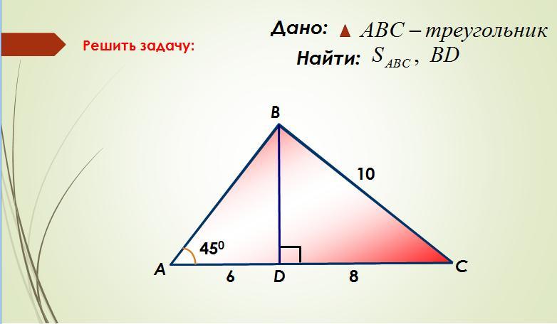 2)угол ABD = 45(180-90-45) Значит этот треугольник равнобедренный и AD=BD=6